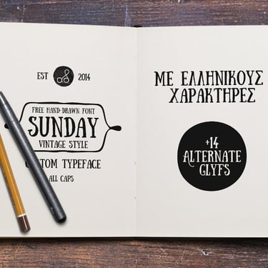 Sunday is the first font I designed at the end of 2014, trying to create my own custom typeface as a part of my lettering practice. It is a vintage style hand drawn font with all cap Latin & Greek characters and 14 alternate glyphs.