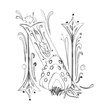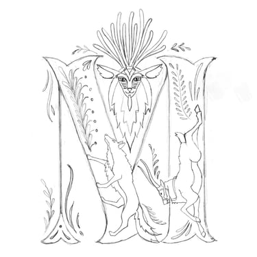 I designed a drop cap letter, the initial letter of the protagonist’s name.